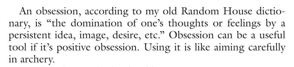 He uses the example of an obsessed bus ticket collector, someone who has passion, but their passion is pointless. I agree with the recipe, except for one word. I don’t think it’s obsession, but rather devotion, perhaps a disinterested devotion.